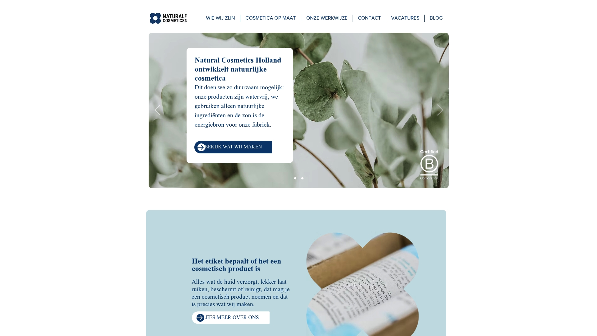 Natural Cosmetics Holland levert watervrije producten en werkt uitsluitend met natuurlijke ingrediënten. De fabriek draait op zonne-energie en het bedrijf draagt het B-Corp keurmerk plus ISO 22716 voor goede productienormen. Ze bieden maatwerk voor private label en white label opdrachten.