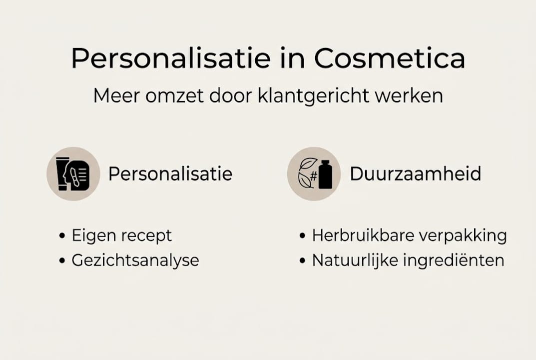 | Personalisatie vergroot omzet | Klantgerichte cosmetica kan voor merken 10-15% extra omzet realiseren door in te spelen op individuele wensen. |