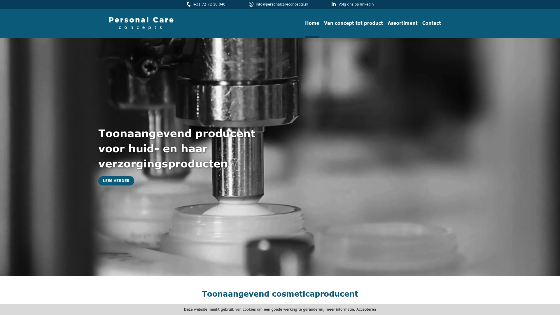 Personal Care Concepts biedt ontwikkeling en productie van huid- en haarproducten en begeleidt klanten van concept tot eindproduct. Ze gebruiken moderne productiefaciliteiten en leggen nadruk op co-creatie en trendinzichten om onderscheidende formules te realiseren.