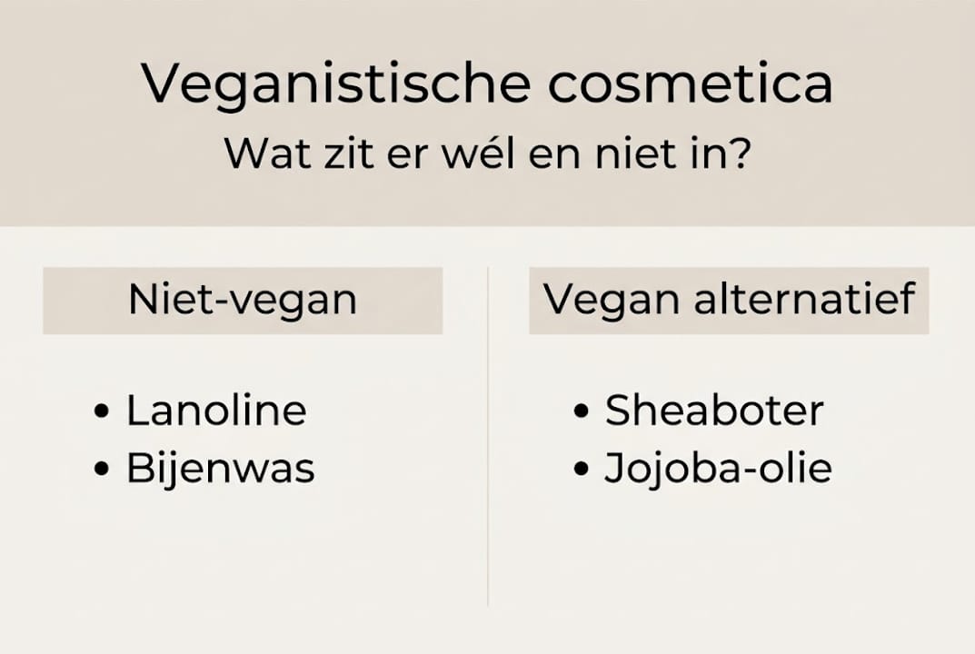 | Vegan is meer dan dierproefvrij | Vegan cosmetica sluit alle dierlijke ingrediënten en bijproducten uit, en vereist supply chain verificatie. |